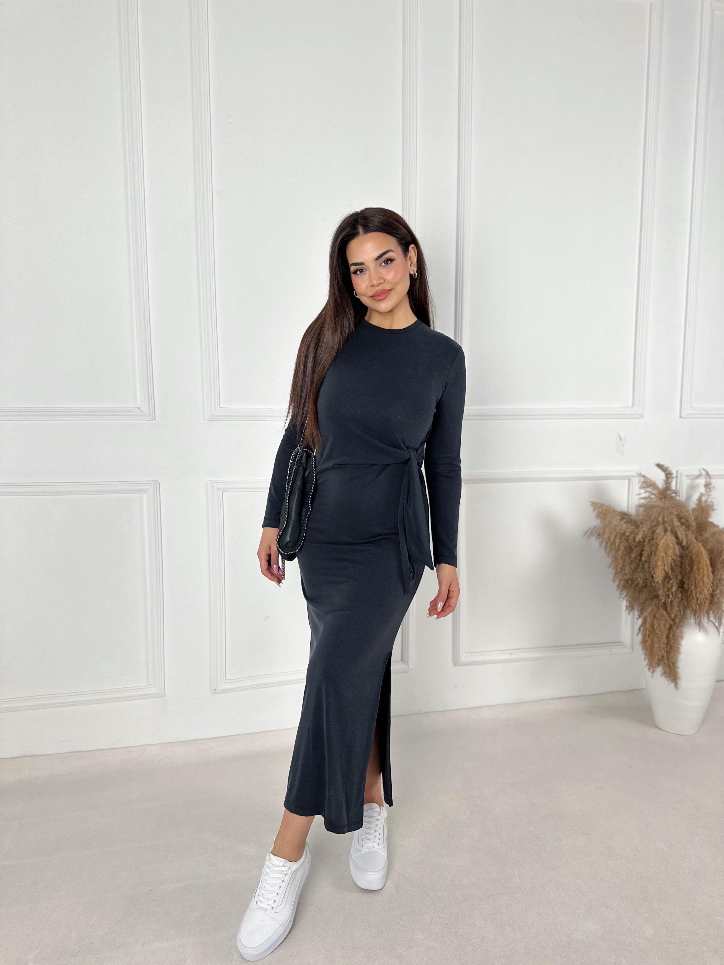 Lüks Kalite Oysho Kumaş Siyah Uzun Kollu Elbise | Nora Butik