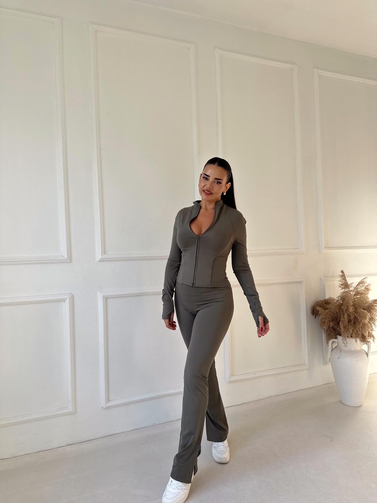 Lüks Kalite Oysho Model Haki Ceket ve Pantolon Takım (2123)