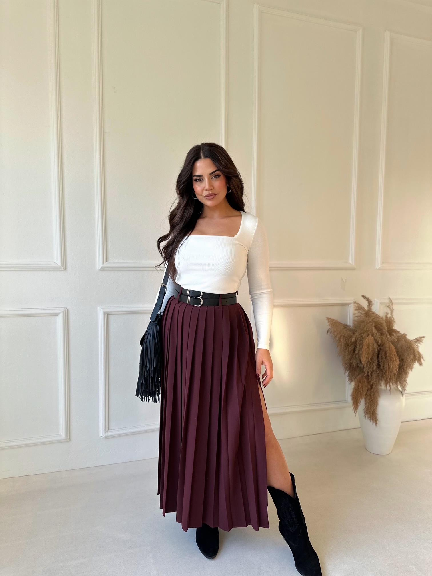 Premium Kalite Çift Kemerli Bordo Maksi Pileli Etek | Nora Butik ile stilinizi ön plana çıkarın. Nora Butik'in özenle hazırladığı bu özel parça, günlük kullanımda rahatlık ve şıklığı bir arada sunuyor. Kadın giyim modasına yön veren detaylarla tasarlanmış bu ürün, günlük kombinlerinizi zenginleştirecek. Hafif dokusu, zarif kesimi ve özgün tasarımıyla hem şehir hayatında hem de özel davetlerde ideal tercihler arasında yer alır. Nora Butik olarak kadınların kendine güvenen ve özgür stilini destekliyoruz. Her gardıropta mutlaka yer alması gereken bu şık parça ile modayı yakalayın.